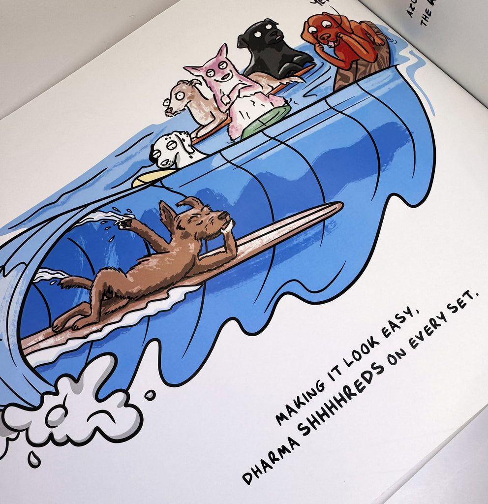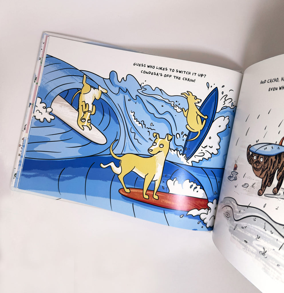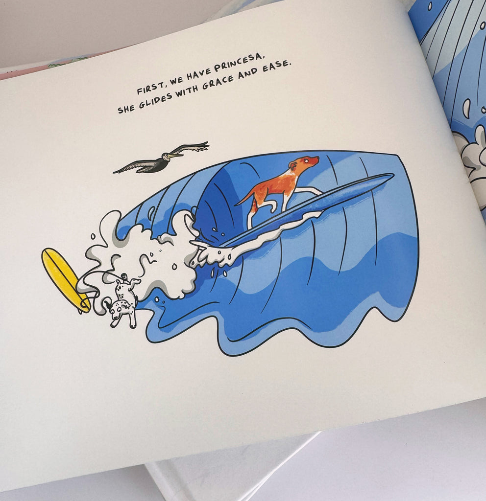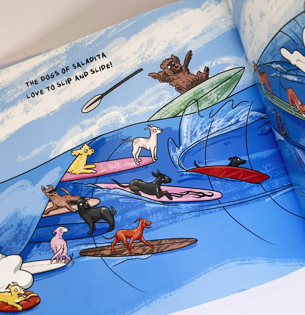 Meet the surf dogs of Saladita — a pack of salty characters from a laid-back Mexican surf town, brought to life through playful rhyme and colourful illustrations.